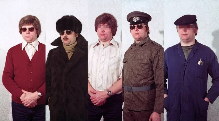史塔西内部伪装教学 – 这个死胖子教官正演示通过穿着伪装成不同职业