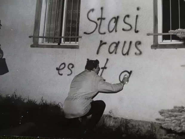 抗议者在墙上写下:“史塔西 – 完蛋了!”(©Reinhard Wenzel)