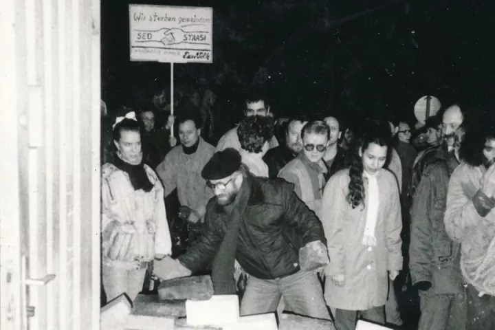 1990年1月15日,民主人士与愤怒的群众开始冲击位于东柏林鲁斯彻斯特街103号的史塔西总部