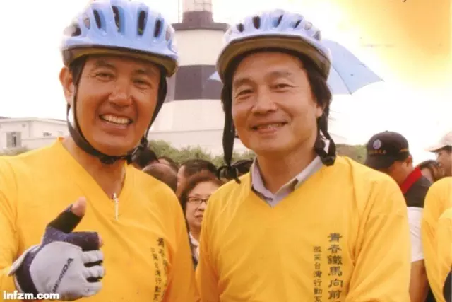 作为“自由主义偏左”的文人,杨渡(右一)曾激烈地反抗国民党的戒严统治。但2007年,他却加入了国民党,成为马英九(左一)竞选团队核心成员。(杨渡供图/图)