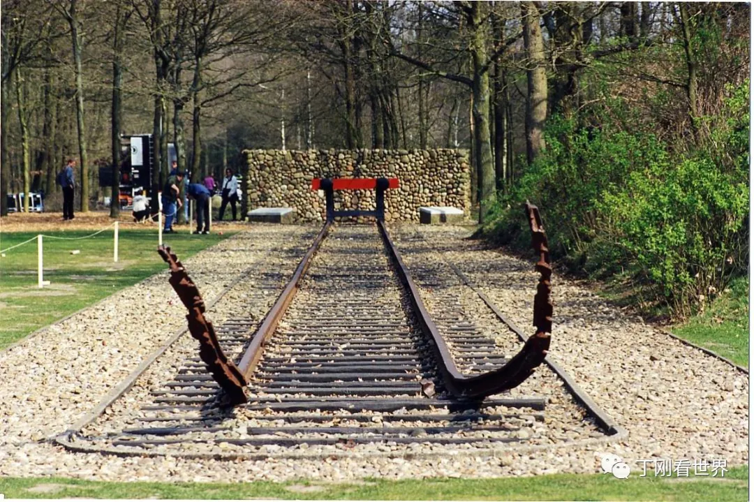 “苦难大道”的尽头是“死亡列车”的发车点。这段铁路在战争后期被破坏,后人在整修集中营遗址时,留下了20多米长的一段铁轨,称之为“威斯特伯克国家纪念碑”(见上图)。