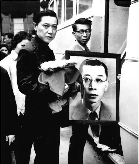 追悼会后,傅聪手抱骨灰盒,傅敏手捧遗像,前往公墓