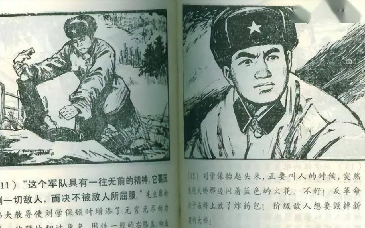 当年5月25日出版的《解放军文艺》1968年10期中,还发表了由八一一0部队供稿、与《解放军报》那篇通讯标题相同的连环画。连环画中对刘学保负伤后还作了这样具有时代特色的描写:“手术的第二天,刘学保醒来后的第一句话是:‘祝毛主席万寿无疆!’第一个要求是:‘把《毛泽东著作选读》拿来。’第一个行动是:和医护人员一起学习毛主席语录。”